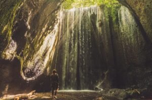 One of Bali’s most photogenic waterfalls, known for its sunbeam effect and peaceful cave setting.